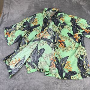 Speedo Swim Beach Cover‎ Up Womens Large Green Aquatic Floral Print Open Front