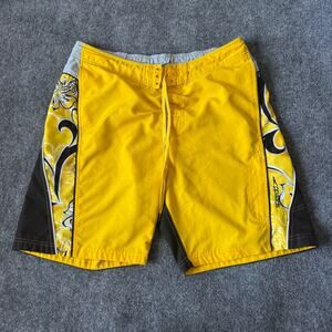 Speedo Swim Shorts Mens 36 Yellow Black Board Drawstring 9in Inseam Beach Pool