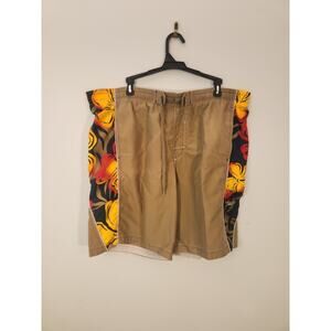 Speedo Swim Shorts Mens Large Orange Brown Floral Board Bermuda Tropical Beach