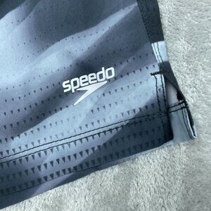 Stylish Speedo XL swim shorts featuring black and gray stripe design. Made with lightweight polyester and elastane for comfort, durability, and quick-drying performance. Great for swimwear or casual wear.