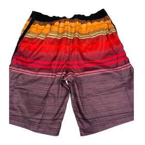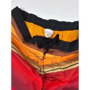 Speedo Swim Trunks Striped Drawstring Swim Shorts Red Orange Mens Size L