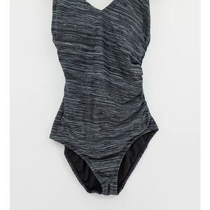 Speedo Swimsuit One Piece Womens 6 Gray Striped Ruched Comfort Modest