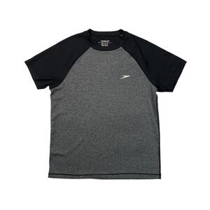 Speedo T Shirt Mens S Small Black Gray UV Sun Protection Short Sleeve Athletic