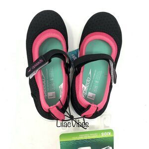 Speedo Toddler Girls' Size Large 9/10 Mary Jane Water Shoes Black Pink NEW