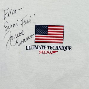 Fruit of the Loom Speedo Ultimate Technique Swim Meet x Olympic Gold Medalist Janet Evans Autographed Tee
