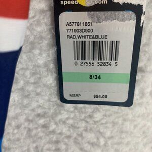 Speedo Vibe One Piece Swimsuit Women 8/34 Blue American Flag Stars Stretch S9817.