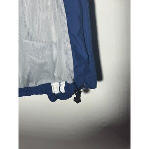 Step up your style with this vintage-inspired **Speedo windbreaker jacket** featuring a bold blue and white colorway and authentic **Utica College embroidered logo** on the back. This classic full-zip track jacket has a sporty silhouette with white accent striping on the front and sleeves, mesh lining for breathability, and an adjustable drawcord hem for a snug fit.