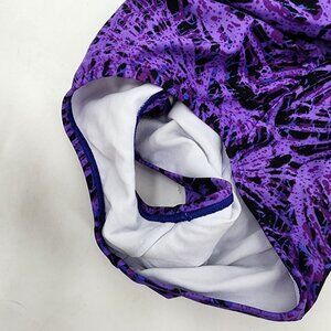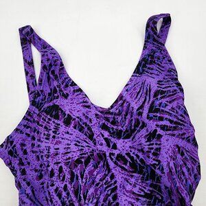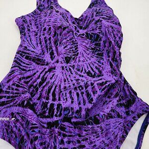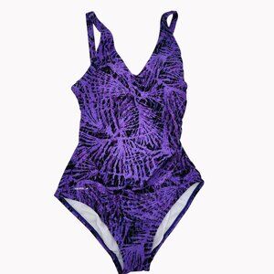 Speedo Womens 8 One Piece Swimsuit Purple Black Print V Neck Padded Bra top