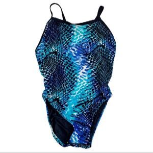 Speedo • Black Teal Blue One Piece Swimsuit • S