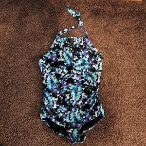 Speedo- Women's Halter Swimsuit Floral Print One-Piece, Size L