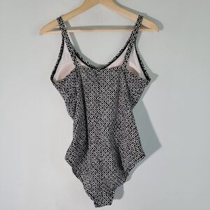 Speedo Women's Plus Size 16 NEW BLACK One Piece Swimsuit Geometric Print Beachy