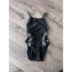 Speedo Women's Pro Lt Flyback Solid Adult One Piece black/ Gray Swimsuit size 8