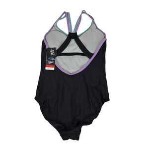 Speedo Women's Double Strap Racerback One Piece Swimsuit size 8 Black NEW