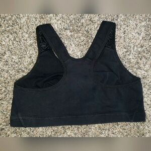 Comfortable Speedo sports bra. Sleek black design. Ideal for active wear.
