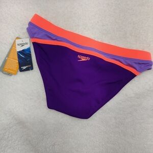 NWT Speedo bikini bottoms in orange and purple. Size 6 (BOTTOMS ONLY)