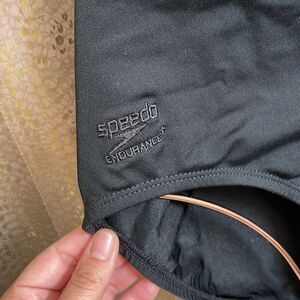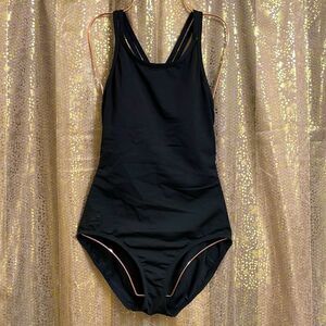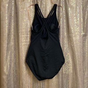 Speedo black endurance one piece swimsuit, criss cross back, size 8