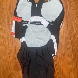 Women’s black Speedo bathing suit with white design Brand new with tags.