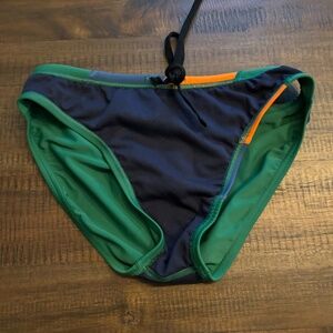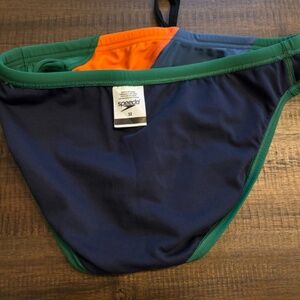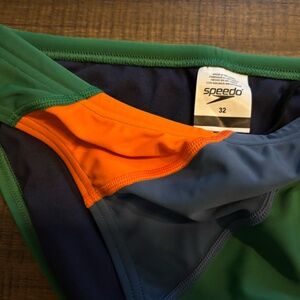 Worn twice. Eye-catching, color-blocked Speedo swim briefs. Size 32, but fits smaller.