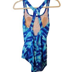 Speedo womens one piece swimsuit, royal blue & turquoise. Size 10. # 829
