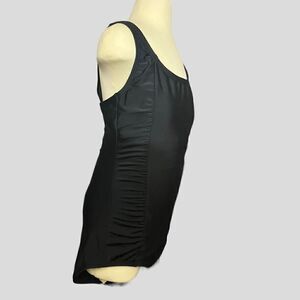 Beautiful black classic one piece with ruching up either side. NWT and sanitary adhesive strip. Wide shoulder straps.