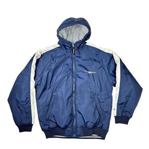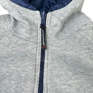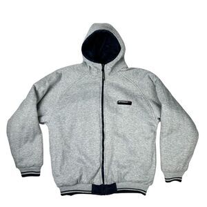 Speedo Jacket Mens Small Blue Gray Windbreaker Fleece Reversible Bomber Hooded