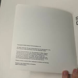 Family Communications, Inc. copyright 2000. Written by Fred Rogers, Illustrated by Richard Hefter, Photographed by John Naso, Deisgned by Martin Stephen Moskoff and Richard Hefter, Created by Hedia Projects, Inc.