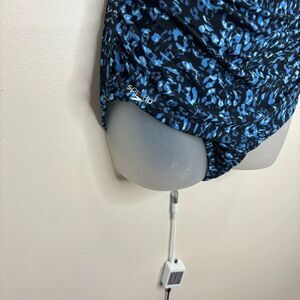 Speeedo Size 10 One Piece Blue Black Speckled Print Swimsuit bathing suit V-neck