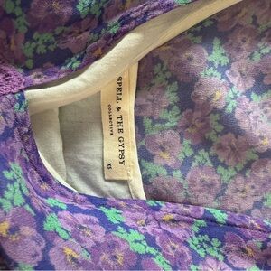 Vintage SPELL Wildflower dress. Great condition, no holes or rips. Altered to add a cinched back and ties. I did get a size Small purple slip in excellent condition