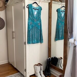 NWT Turquoise sequins mini dress size S missing very few beads can hardly notice it.