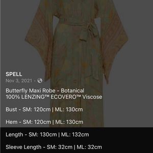 NWT Spell Butterfly maxi robe in Botanical. Size M/L available. Matching tie belt included. Pockets! Dramatic kimono style sleeves. Love all the prints Spell does in green ๐