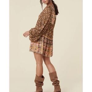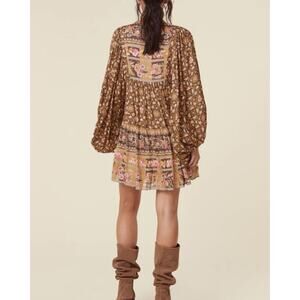 Spell Designs Madame Peacock Boho Mini Dress Coffee Brown Size Small