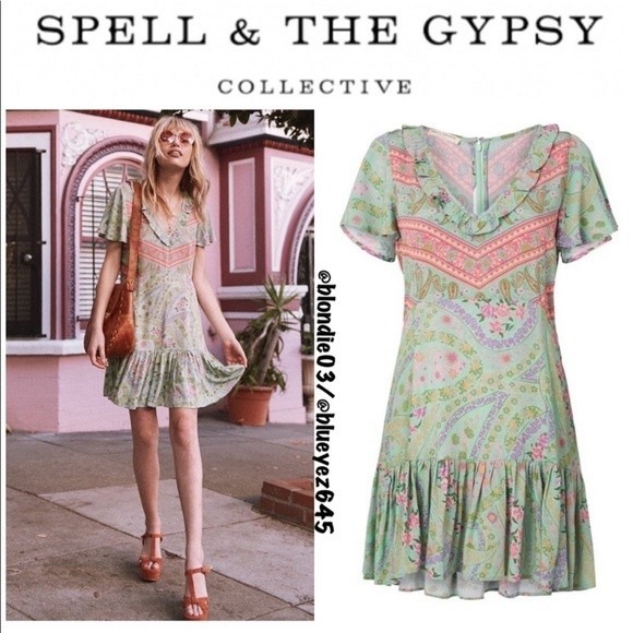 This is a City Lights Mini Dress in Sage by Spell & Gypsy Collective in size medium. This dress is in excellent condition! Thanks for looking!!