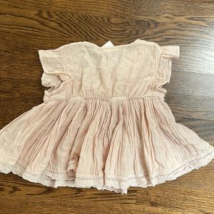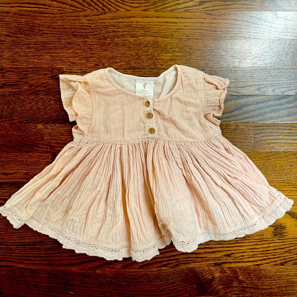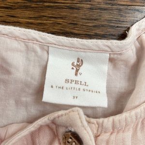 Charming peach top with ruffle sleeves. Features wooden buttons. Perfect for playful days.