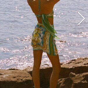 A striking statement style, the Maddelena Wrap Skirt in Limoncello is back by popular demand in a fresh new colorway, adorned in intoxicating Italian summer hues. Our hand-drawn print is inspired by timeless Italian art motifs and offers a playful romance to your look. Like the original, our skirt is crafted from our exquisite 100% LENZING™ ECOVERO™ Viscose, is lined for comfort and modesty, and designed to captivate. Pair it with the matching Maddelena Shirt and statement heels for date night or with swim and a tank for exploring coast lines hand in hand with your lover.