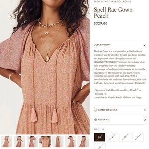 Spell & the Gypsy Rae Gown New w/tags Colorway is Peach. Very generous amount of material. Beautiful & can be worn a few ways. Made with organic cotton & Lenzing Ecovera viscose.
