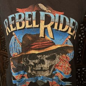Spell and the Gypsy Collective muscle tank with Rebel Rider graphic. Says “Rebel Rider Mustang Country”.