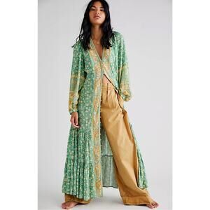 Spell & The Gypsy Collective Floral Madame Peacock Green button maxi Dress