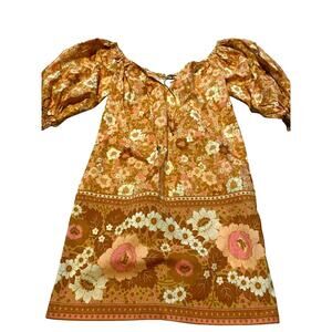 Spell & The Gypsy Dress Women's S Anne Tunic Peach Yellow Floral Off Shoulder
