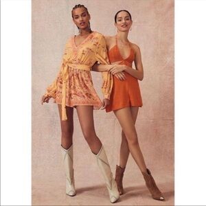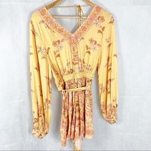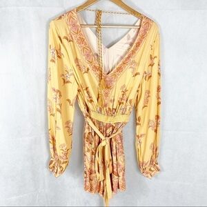 Spell & The Gypsy Dylan Romper in sunrise size XS. Relaxed sleeves with cuff, V neck, floral print, elastic waist, comes with a belt. Measurements are approximates only
