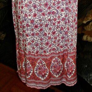 Buttons run from the top of the neck to 10" above the crocheted hem-extra button on care tag