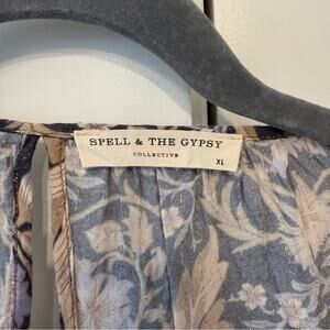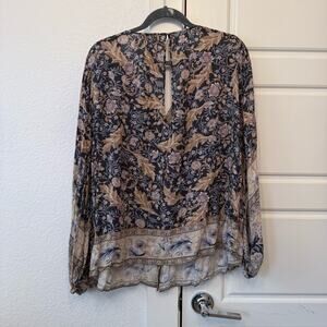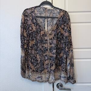 Embrace a bohemian vibe with this floral blouse. Featuring a mix of black, cream, and tan hues, it's perfect for any casual outing.