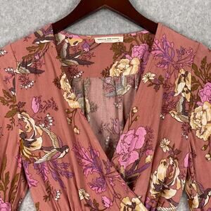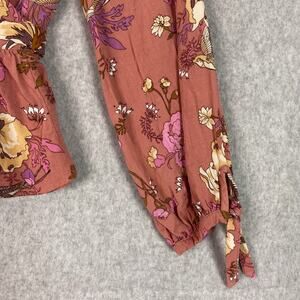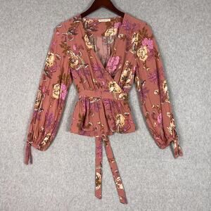 Spell & The Gypsy Pink Floral Rosa Long Sleeve Wrap Blouse Size XS