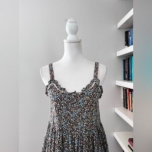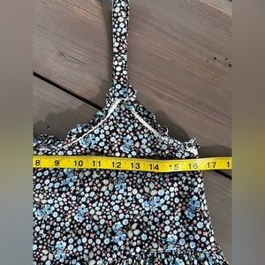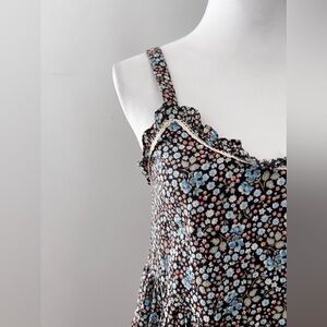 The Poppy Strappy Mini Dress by SPELL, in a garden hide away floral signature ditsy print for the season in a cool-girl boho shape. With cute lace detailing, intricate lace-trimmed frills throughout and lined for everyday wear.