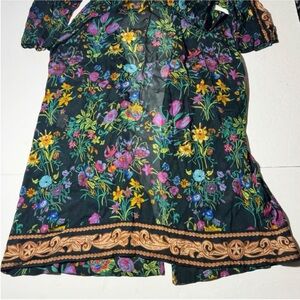 Rare Spell & The Gypsy Queen duster robe in black floral. Open front, 3/4 sleeve length with button at cuffs. Sheer, lightweight, 100% viscose. Excellent used condition. One size fits most, approximate length shoulder to hem 52”. Stock photos to help show fit and styling ideas. Feel free to ask any questions.