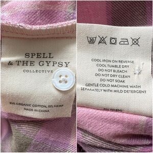 “The Maverick Flannel is a beloved Spell style. Our flannel is crafted with our usual cosy and soft fabrication and features buttons, two patch pockets and a curved hem. A classic fit, our flannel is designed as a layering piece; Button her up with denim and boots, wear open or tied around your waist (as Spelly would!) to grunge up your Spell ensemble.”