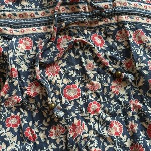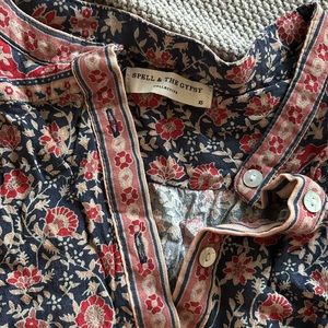 Spell long sleeved mini dress in the jasmine print. Button up front, waist tie, and mini skirt with pockets. Excellent condition.