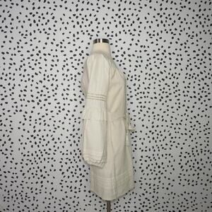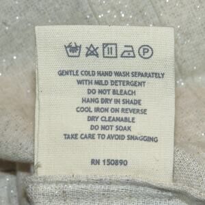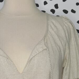 Size xxsmall, very good condition, tassel tie, split neck, waist tie, keyhole back, 80% cotton 18% linen 2% metallic