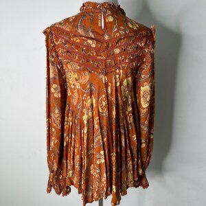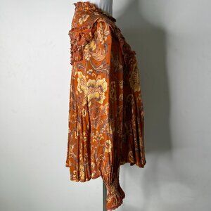 Spell & the Gypsy Collective Women's Orange Tan Aurora Ruffle Blouse Size Small