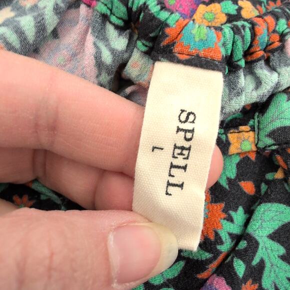 Spell & the Gypsy Floral Jumpsuit Womens L Romper Summer Tassel Indie Cottage