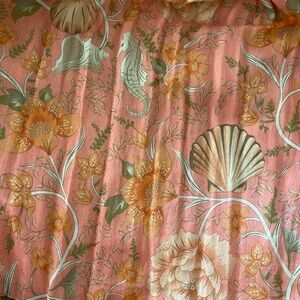 Featuring the stunning signature Seashell print, eclectic hues pop from a neutral background as florals dance with ocean motifs & mystical mermaids glide across this luminous piece.